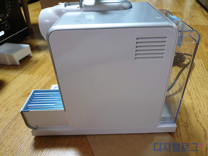 측면은 깔끔하다. 무엇보다 기존 픽시 사용 시 보다 좋은 점은 물탱크가 넉넉하게 크다는 점이다. 다만 물탱크가 너무 슬림하여 물탱크에 물을 넣을 때 꼭 손으로 잡은 상태에서 물을 보충해야 하는 점은 다소 불편하였다.