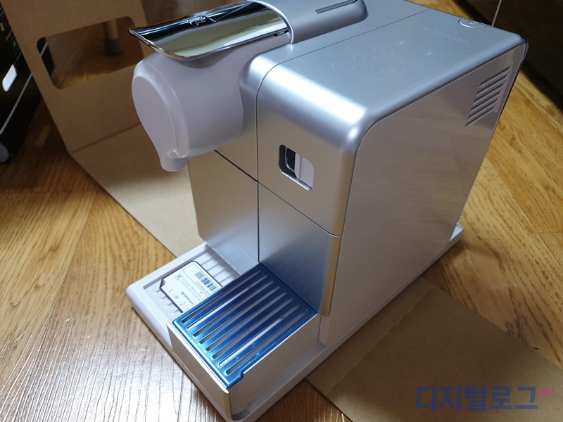 라티시마 터치 본체이다. 구입한 색상은 실버 모델이다. 사진보다 실물이 더 멋지다. 좌측에는 커피를 내리는 에스프레소 머신이 있고 우측에는 우유 거품기를 탈착 할 수 있는 스팀기 체결 부위가 있다.
