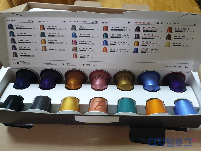 역시나 새로운 제품의 언팩은 즐거운 일이다. 네스프레소 머신에서는 기본적으로 테스팅을 해 볼 수 있도록 샘플 캡슐이 제공되는데 신제품이라 그런지 캡슐도 최근에 출시된 캡슐이 제공된다는 점이 눈에 띈다.
