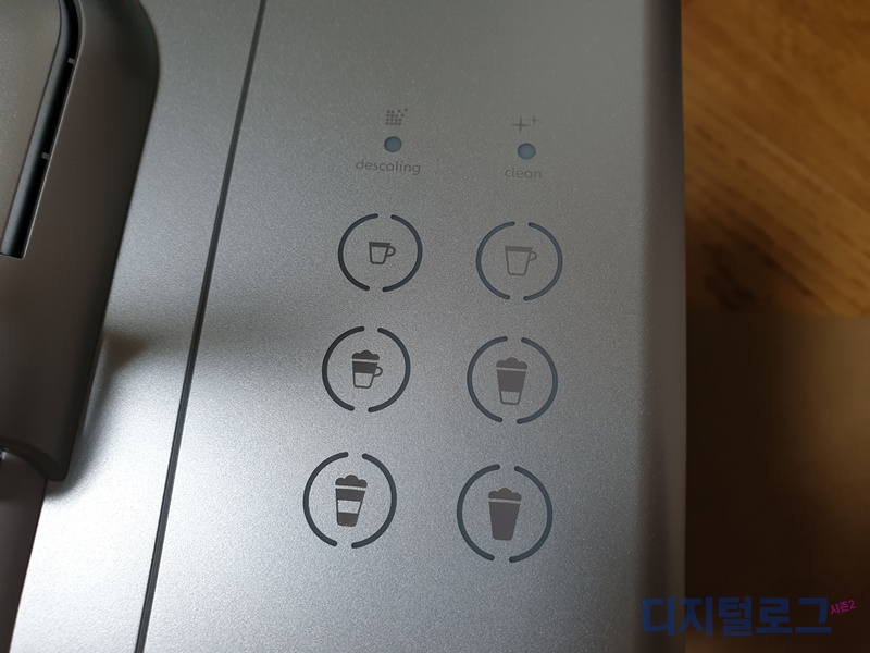 조작 버튼이 많아서 아주 다양한 기능이 되는 것처럼 보이지만 맨 상단 두 개는 에스프레소 커피 추출 버튼으로 리스트레토(40ml)와 룽고(110ml) 추출이 가능하다.