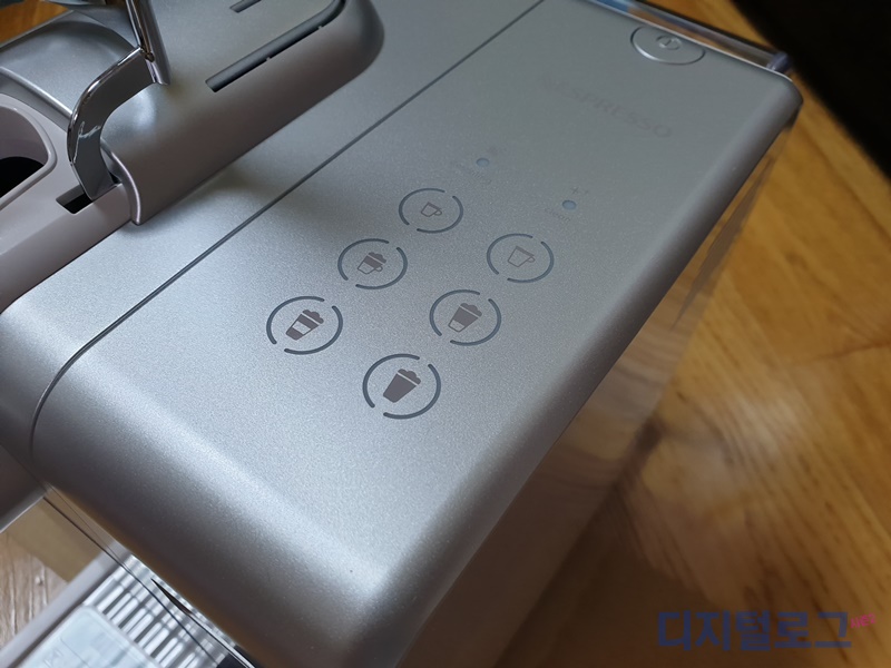 조작 버튼이 많아서 아주 다양한 기능이 되는 것처럼 보이지만 맨 상단 두 개는 에스프레소 커피 추출 버튼으로 리스트레토(40ml)와 룽고(110ml) 추출이 가능하다.
