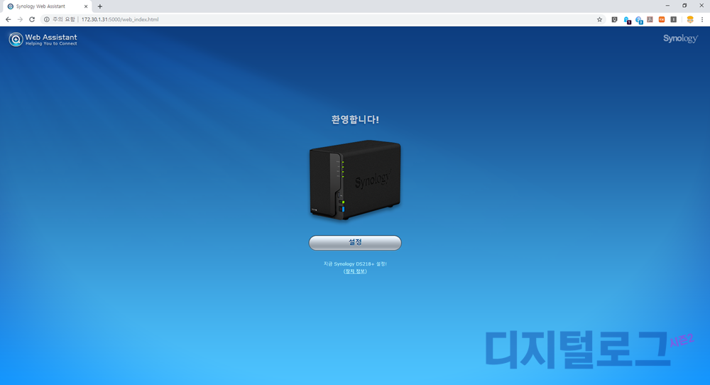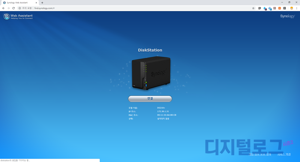 주의할 점은 컴퓨터와 나스가 같은 공유기를 사용해야 한다는 것이다. 그래야 초기에 나스를 자동 검색하여 쉽게 DSM 설치가 가능하다.