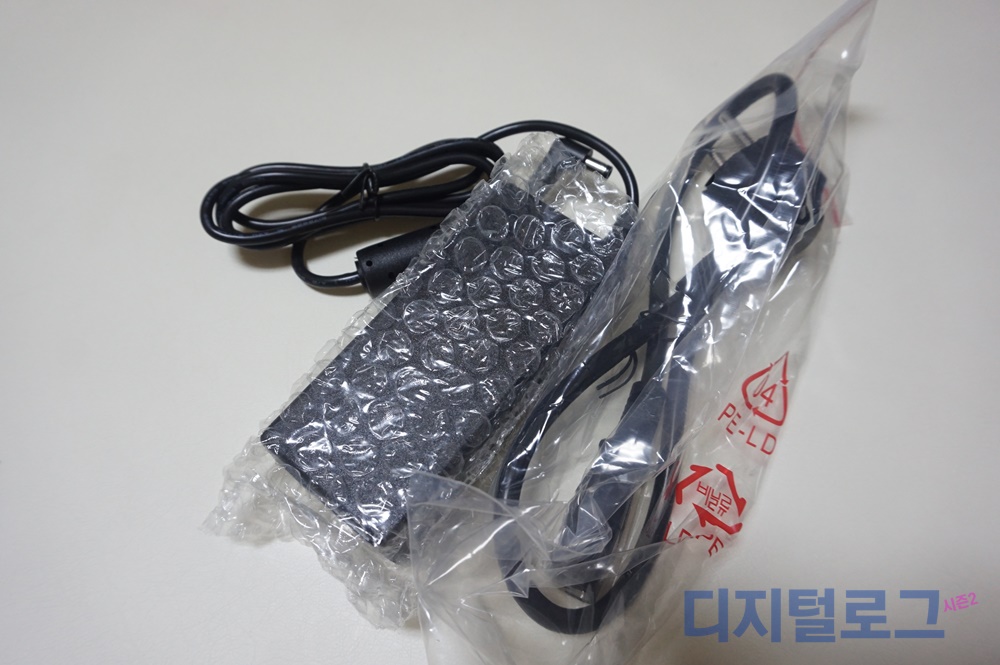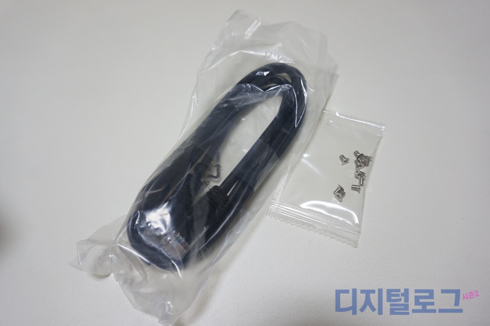 구성품은 매우 단촐하다. 전원 어댑터 그리고 랜선과 여분의 나사를 제공한다.