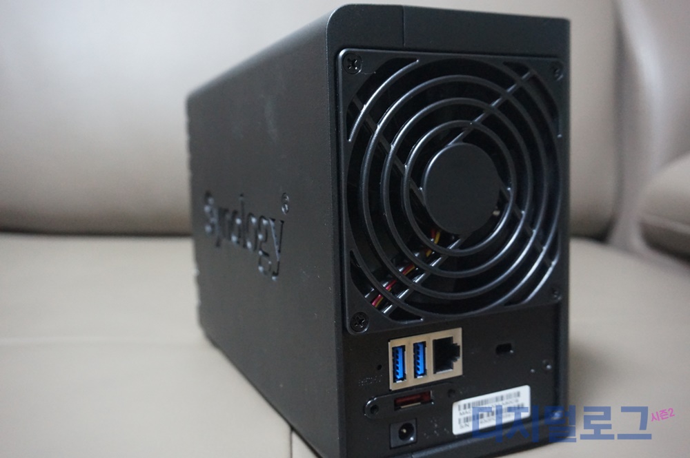 후면에는 냉각팬과 1개의 랜 포트 그리고 USB 3.0 포트 2개가 제공된다. USB 포트는 사실 거의 쓸 일이 없고 나스 사용을 위해서는 랜선과 전원 어댑터만 연결해주면 준비 끝이다.