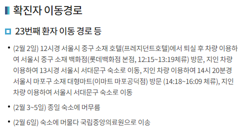 오후 2시 현재 질병관리본부에서 일부 동선을 발표하였다.