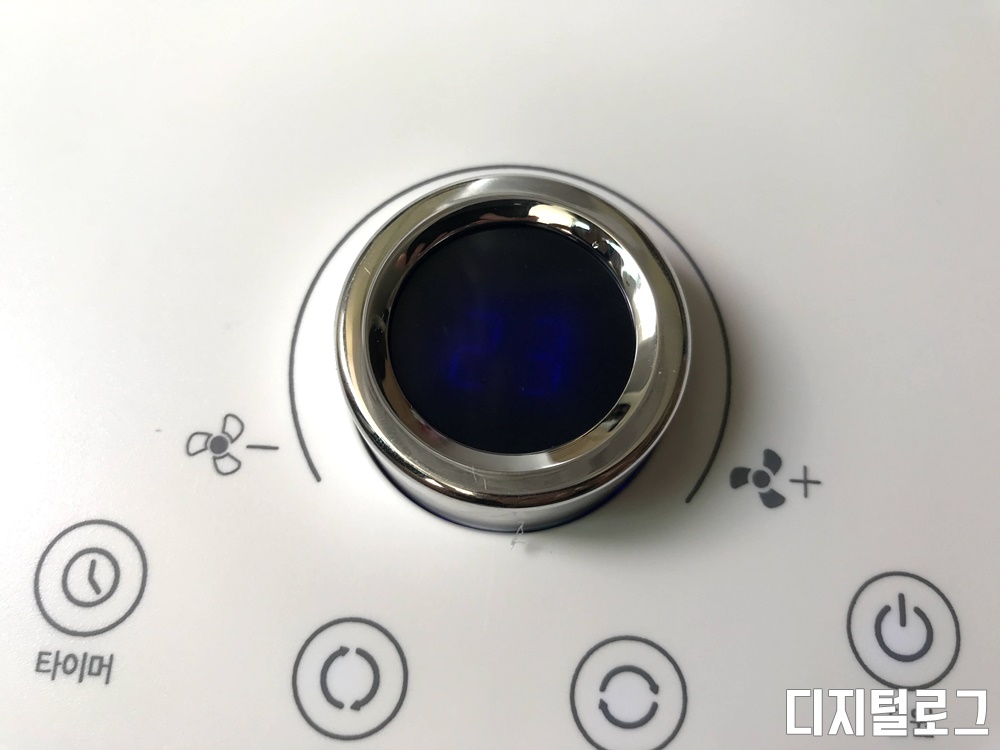 본체에는 다이얼식으로 파워을 조절할 수 있는 노브가 있고 전원과 방향 전환 타이머 기능 버튼은 터치식으로 지원된다.