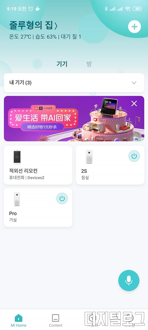 이제 정상적으로 등록을 하면 다시 미홈앱을 통해 샤오미 기기를 사용할 수 있게 된다.