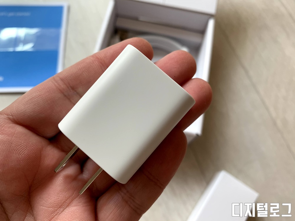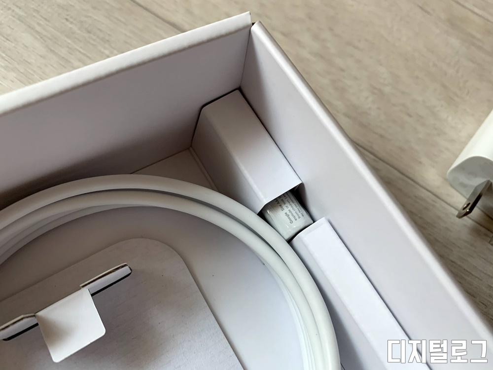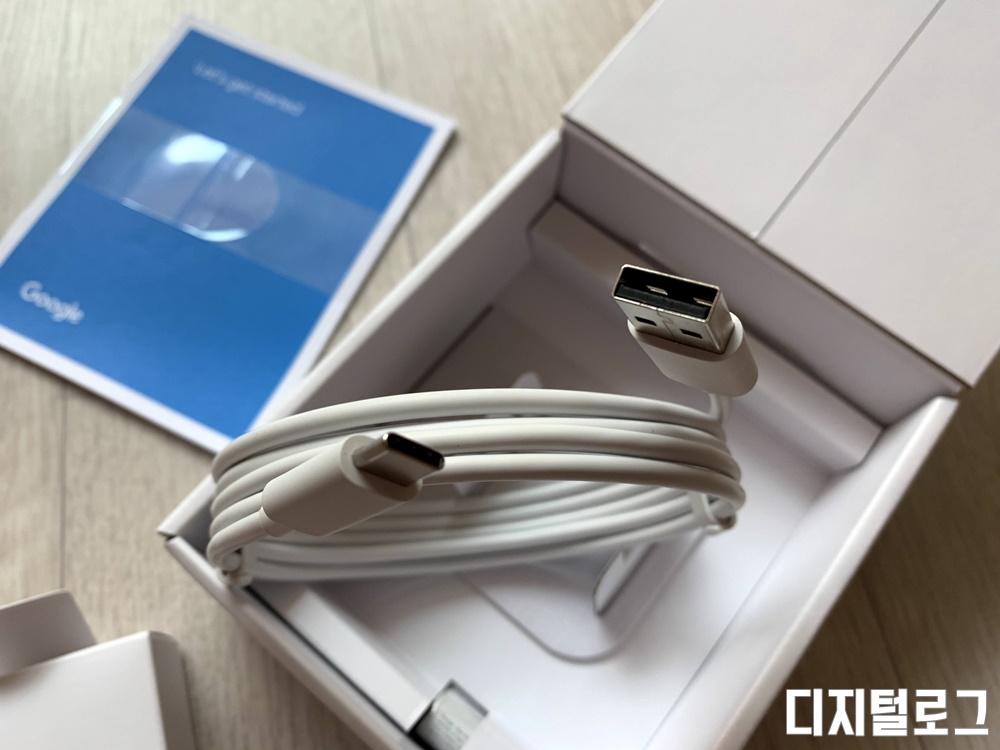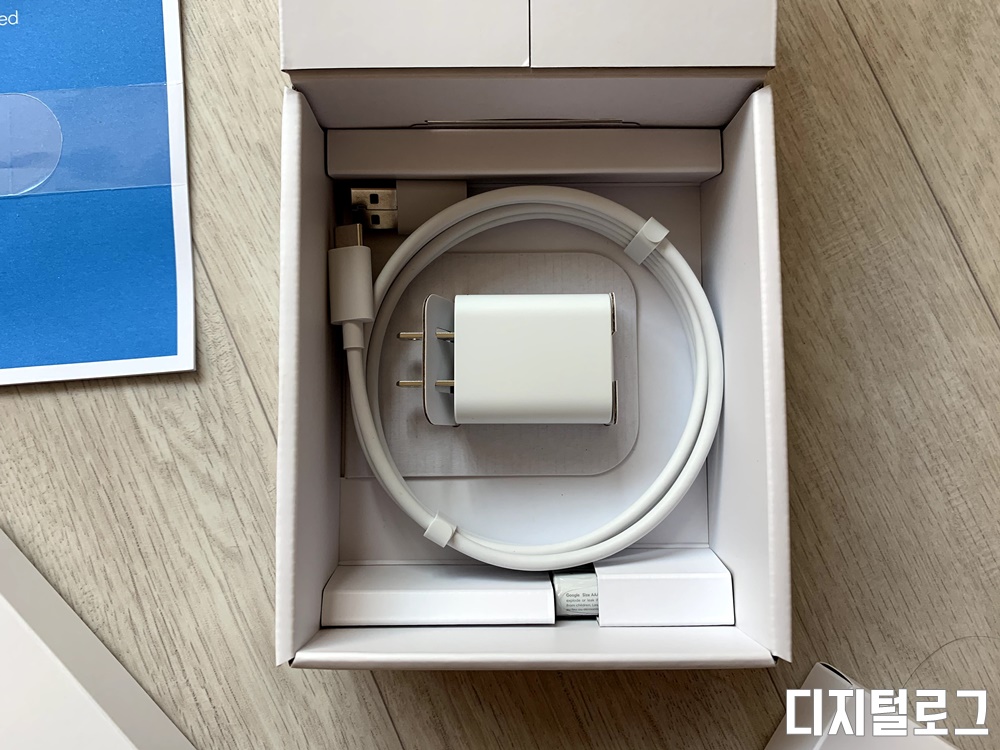 2개의 소박스를 꺼내면 바로 아래에는 매뉴얼이 제공되고 매뉴얼 아래에는 USB-C 케이블과 전원어댑터가 들어있다.