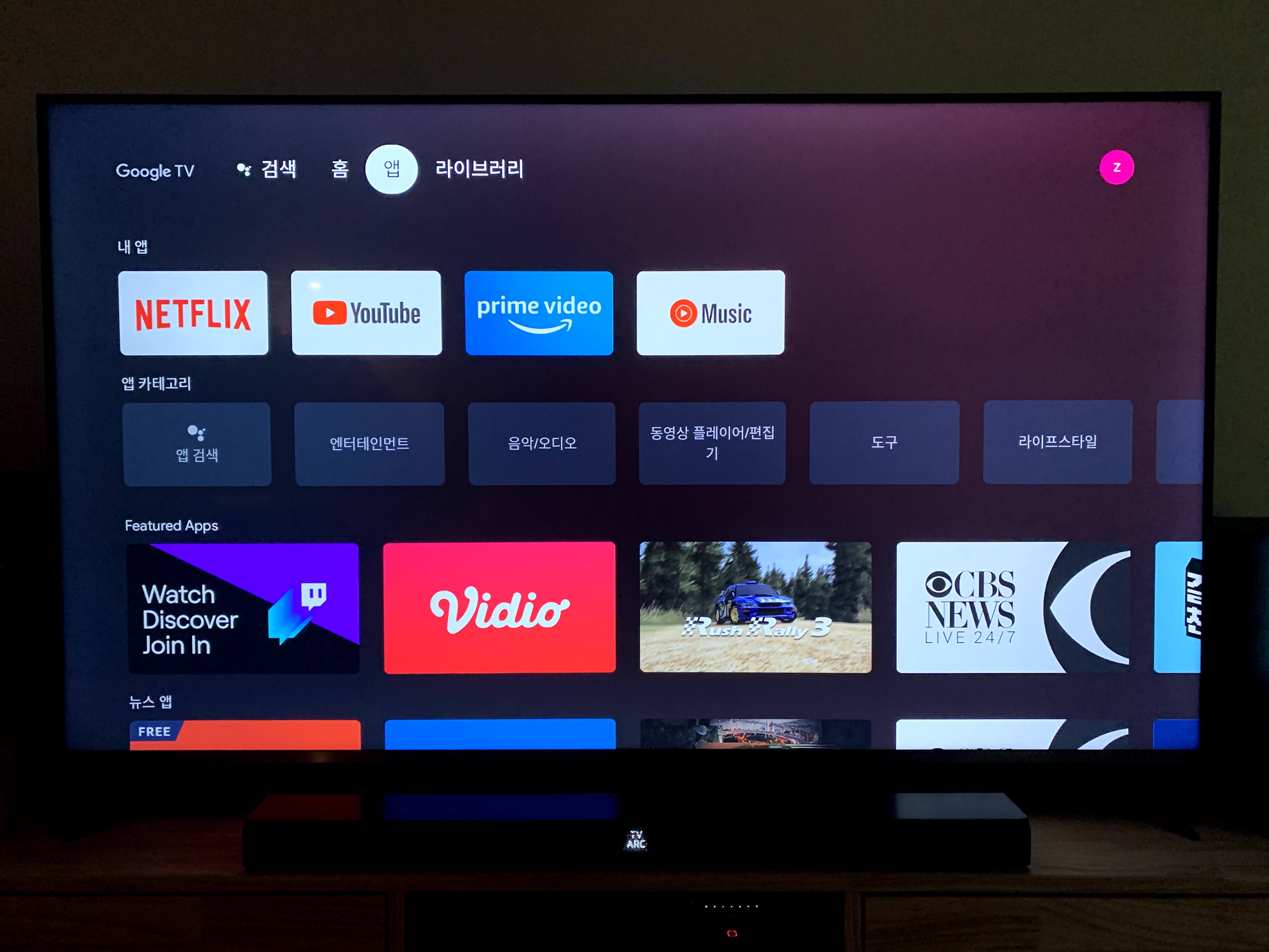 설치와 기본 설정은 매우 간단하게 할 수 있다. 설치가 완료되면 구글 TV 화면이 바로 실행된다.
