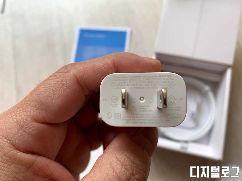 크롬캐스트 4세대에 기본제공되는 어댑터는 프리 볼프 제품으로 5V 1.5A (75W)의 출력이 제공되는 어댑터이다. 미국에서 출시한 제품이라 국내 콘센트에서 사용하려면 돼지코를 구해야 한다.