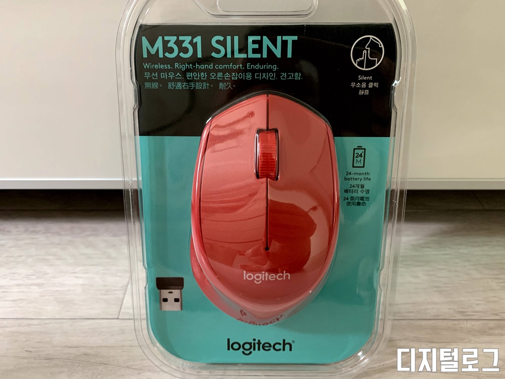 그동안 마이크로소프트 디자인 마우스를 사용해 왔는데 마우스는 이쁘고 작동도 잘 되지만 너무 평평한 구조를 가지고 있다 보니 장시간 사용하면 은근히 손에 무리가 가서 그립이 편한 마우스로 교체하려고 구입 한 로지텍 M331 싸일런트 마우스이다.
