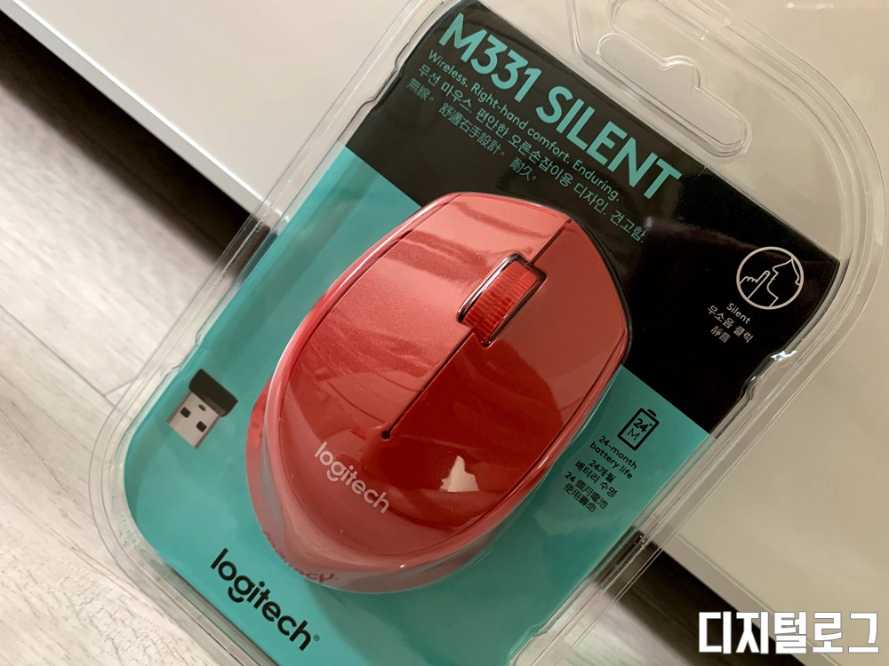 그동안 마이크로소프트 디자인 마우스를 사용해 왔는데 마우스는 이쁘고 작동도 잘 되지만 너무 평평한 구조를 가지고 있다 보니 장시간 사용하면 은근히 손에 무리가 가서 그립이 편한 마우스로 교체하려고 구입 한 로지텍 M331 싸일런트 마우스이다.