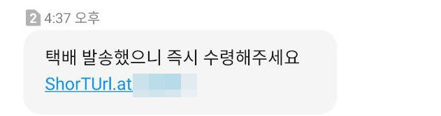 택배가 왔다거나 등기가 도착했다는 등의 내용에 URL이 포함된 형태로 오는 스팸문자의 경우 해당 URL을 클릭하도록 유도하여 악성프로그램(해킹 프로그램)을 설치한 후 개인정보 및 금융정보를 유출해 가는 고도의 사기 방법이다.