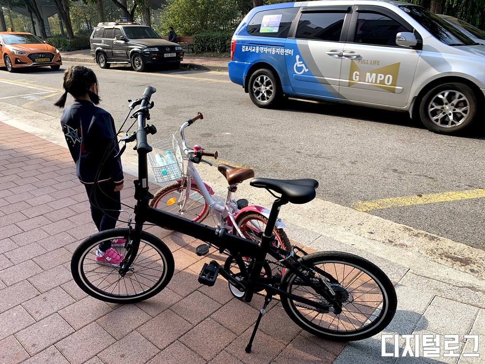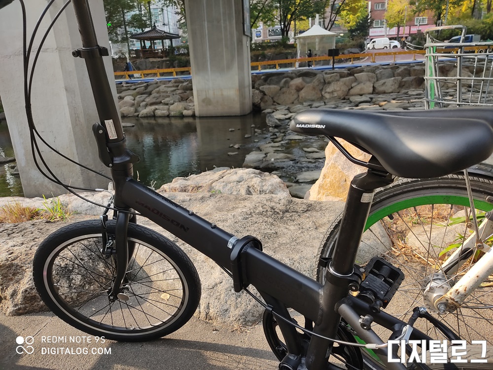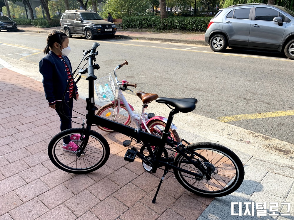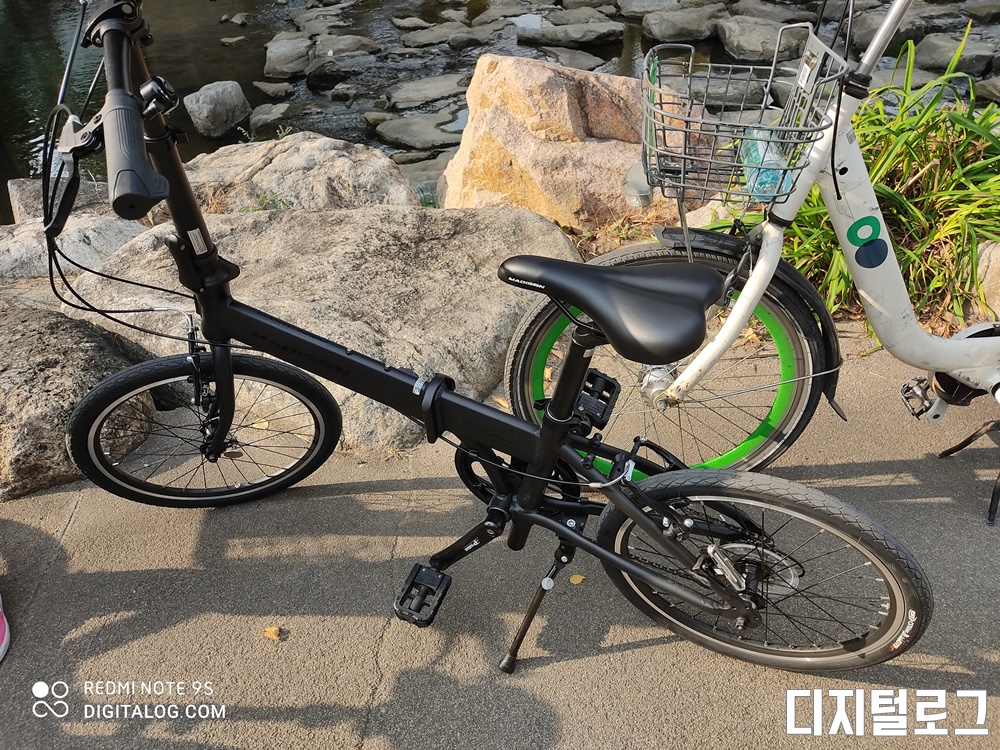 접은 모습을 찍진 못했는데 접는 순서는 의자 싯포스트를 내리고 핸들을 접은 후 차체를 접으면 된다. 시간은 1분 도 걸리지 않고 숙달되면 아주 빠르게 자전거를 접고 펼 수 있을 것 같다.