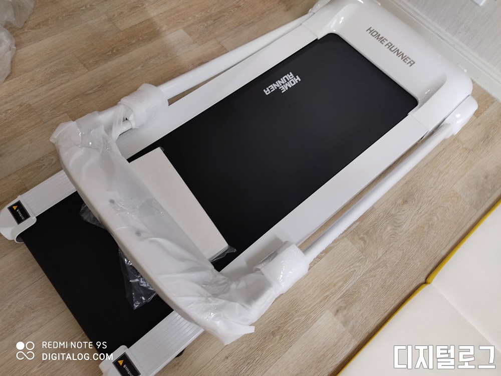 런닝머신은 완조립 상태로 포장이 되어 있어서 바로 사용이 가능하다. 사실 집이 좁기도 하여서 접이식인 샤오미 워킹패드를 구매하려고 하였는데 이 제품은 접이식은 아니지만 세워서 보관이 가능하다는 장점이 있다.