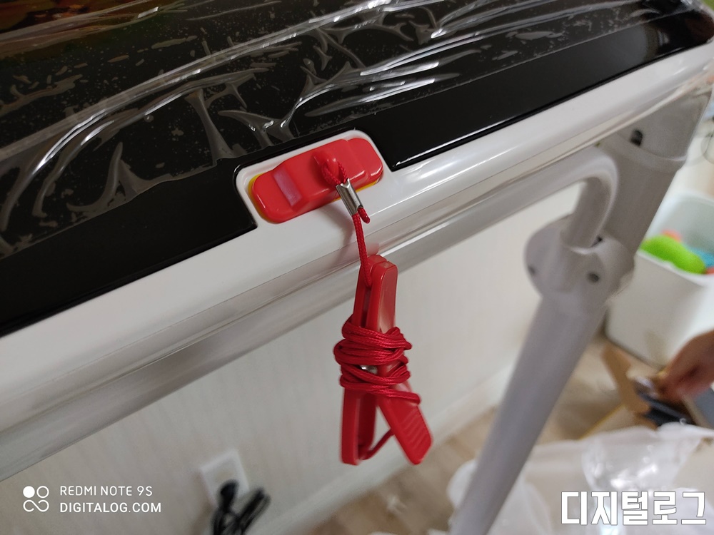 저가형이어서 그런지 나사로 고정을 해야 하는 번거로움이 있다. 집안 공간이 여유로운 분들은 그냥 설치 상태로 놓고 쓰시면 나사를 뺄 일이 없겠지만 사용하지 않아 보관을 하거나 다시 사용을 하기 위해서는 나사를 풀고 다시 고정하는 것이 꽤나 귀찮을 것 같다.