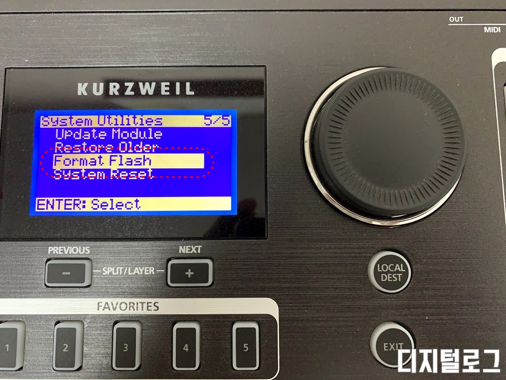 시스템 유틸리티 메뉴 중 포맷 플래시(Format Flash) 메뉴를 실행(엔터)한다. 주의 메시지가 나오면 엔터를 눌러 최종 확인하면 플래시 메모리가 자동으로 포맷된다.