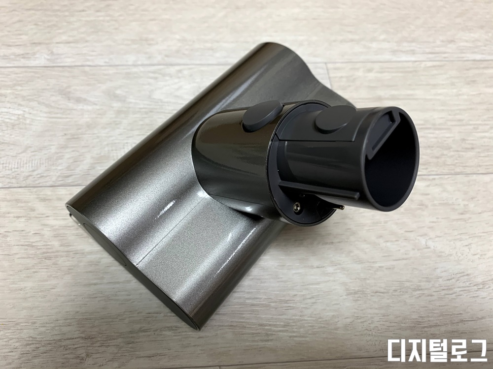 드리미 V11 본체이다. 싸이클론 집진기술이 적용되어있고 가장 중요한 핵심 부품인 모터는 내구성과 성능이 좋은 브러시리스 모터가 탑재되어 있다.