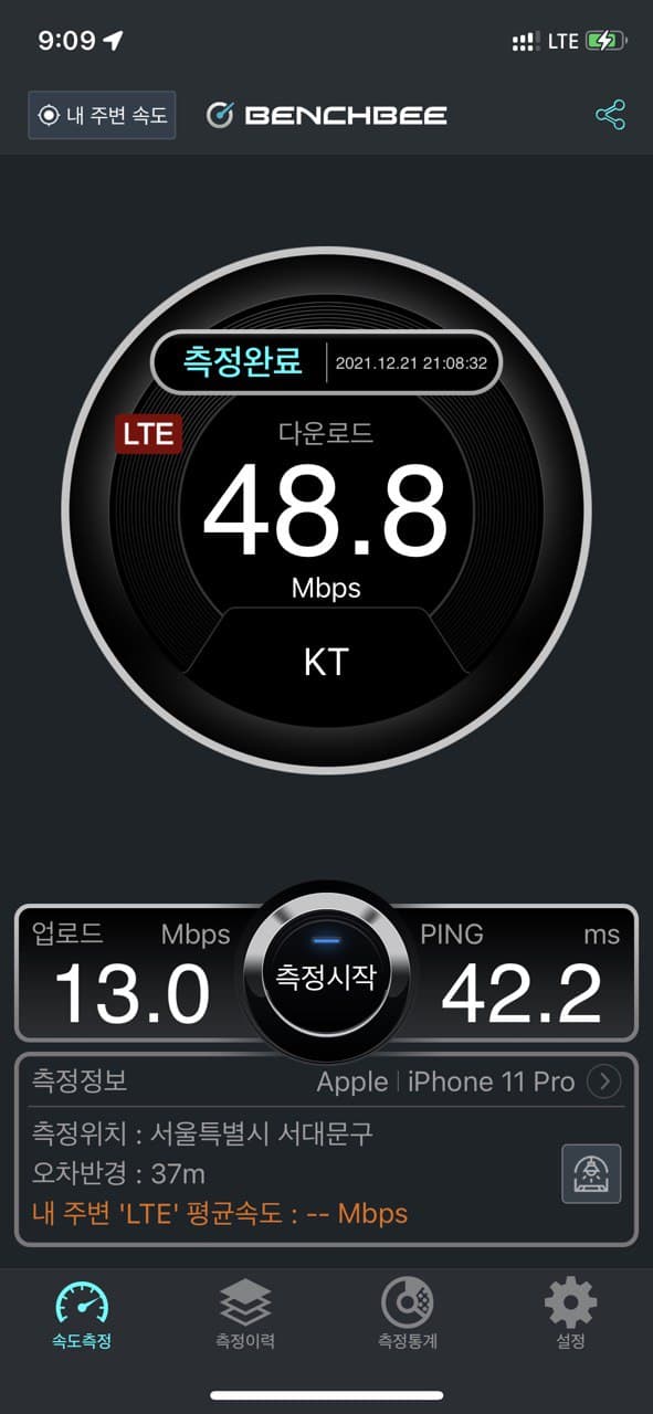 같은 장소에서 LTE 회선과 LTE 라우터의 속도를 비교해 보았다. 측정한 장소는 비교적 LTE 속도가 빠른 곳이라 LTE 라우터 역시 FHD 동영상을 끊김 볼 수 있을 정도의 속도를 내주고 있다. 하지만 이동 시 사용 위치에 따라 현저하게 LTE 속도가 떨어지는 곳에서는 LTE 라우터 역시 매우 답답함을 느끼게 된다.