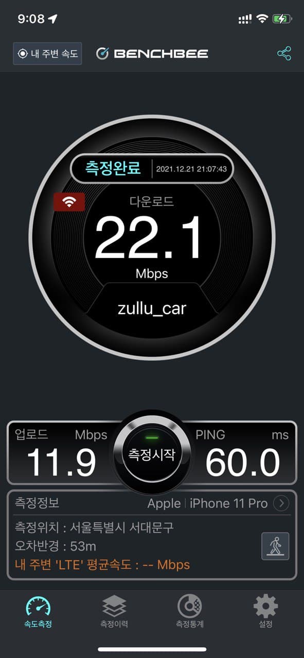 같은 장소에서 LTE 회선과 LTE 라우터의 속도를 비교해 보았다. 측정한 장소는 비교적 LTE 속도가 빠른 곳이라 LTE 라우터 역시 FHD 동영상을 끊김 볼 수 있을 정도의 속도를 내주고 있다. 하지만 이동 시 사용 위치에 따라 현저하게 LTE 속도가 떨어지는 곳에서는 LTE 라우터 역시 매우 답답함을 느끼게 된다.