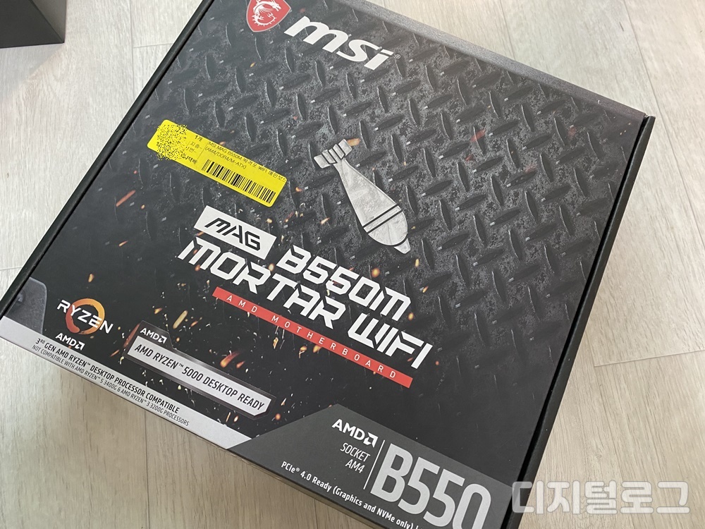 다음은 메인보드이다. 그동안 아수스 제품을 사용했는데 이번에는 MSI로 구매했다. 모델명은 MSI 박격포 B550 wifi 이다. AMD CPU를 사용할 수 있는 상급칩셋을 탑재한 보드에 와이파이까지 지원되어서 가격은 꽤 비싼 제품이다.