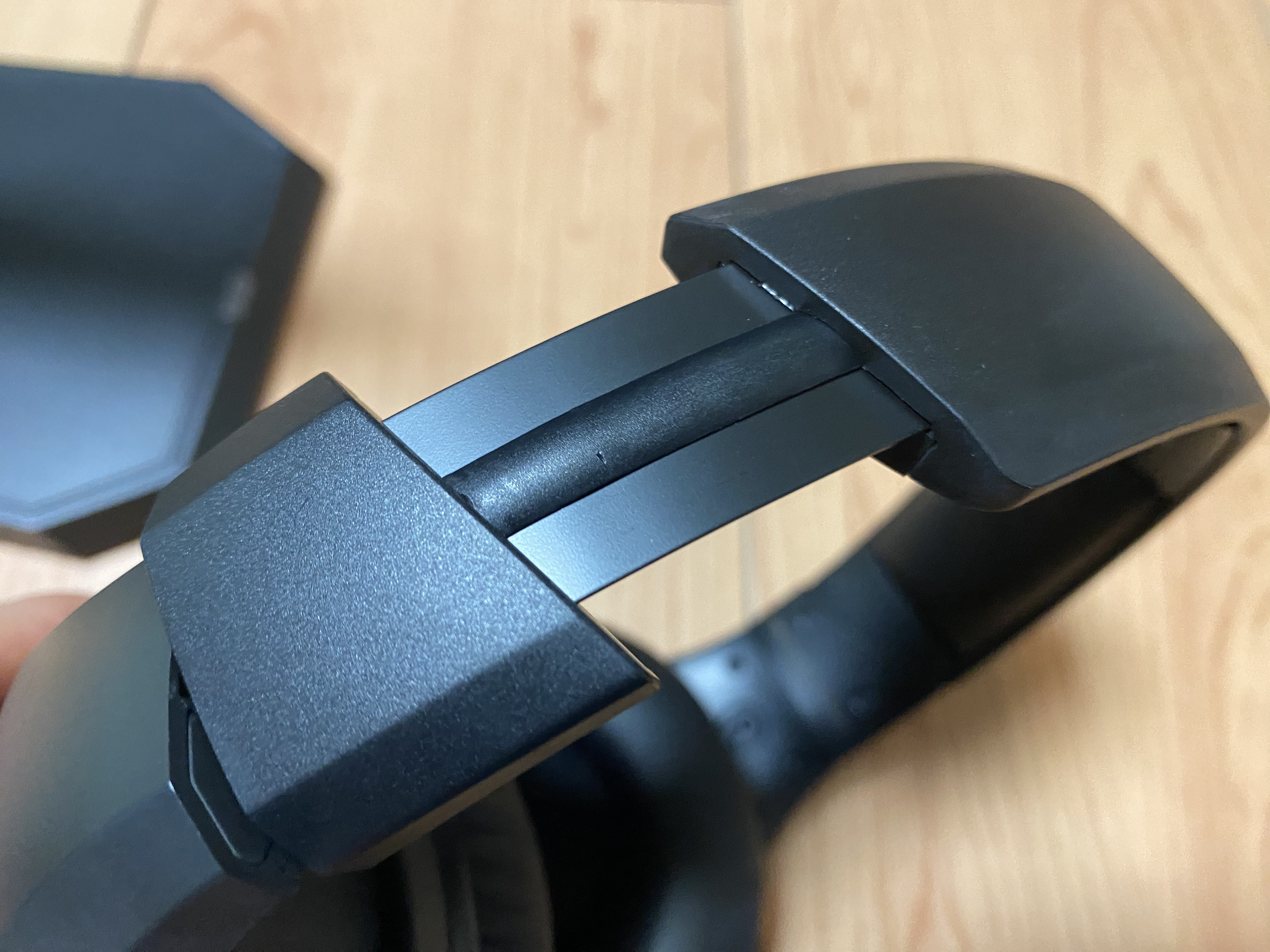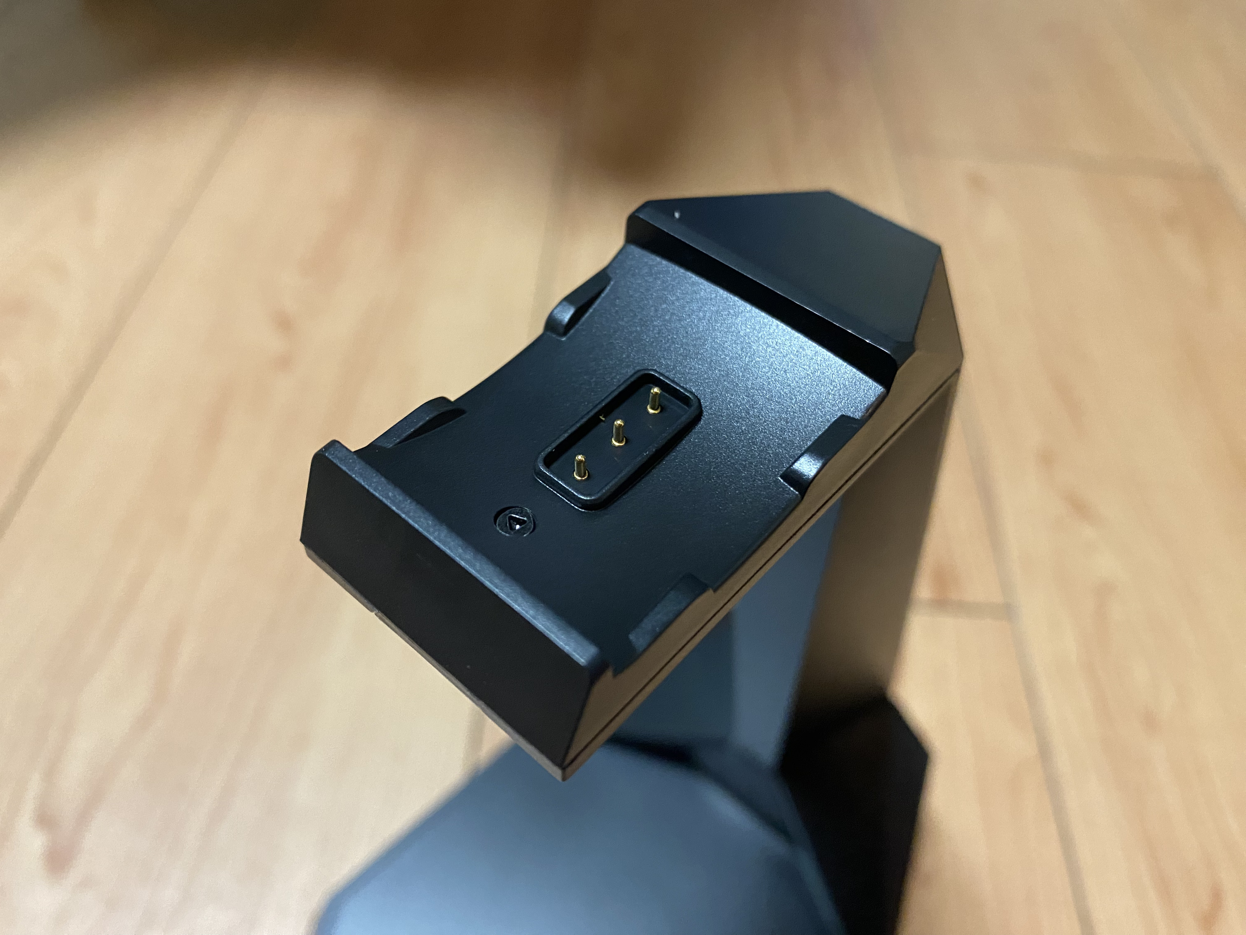 헤드폰 상부에는 거치대를 통해 충전을 할 수 있는 충전단자가 노출 되어 있다. 이 부분이 조금 걱정되긴 했다. 사람 몸에서는 땀이 배출되는데 머리에서 발생하는 수분으로 인해 단자가 부식되지 않을까 하는 우려가 생겼다. 앞으로 사용해 봐야겠지만 이 충전 부분이 무선이었다면 정말 최고였을텐데 하는 아쉬움이 있었다.