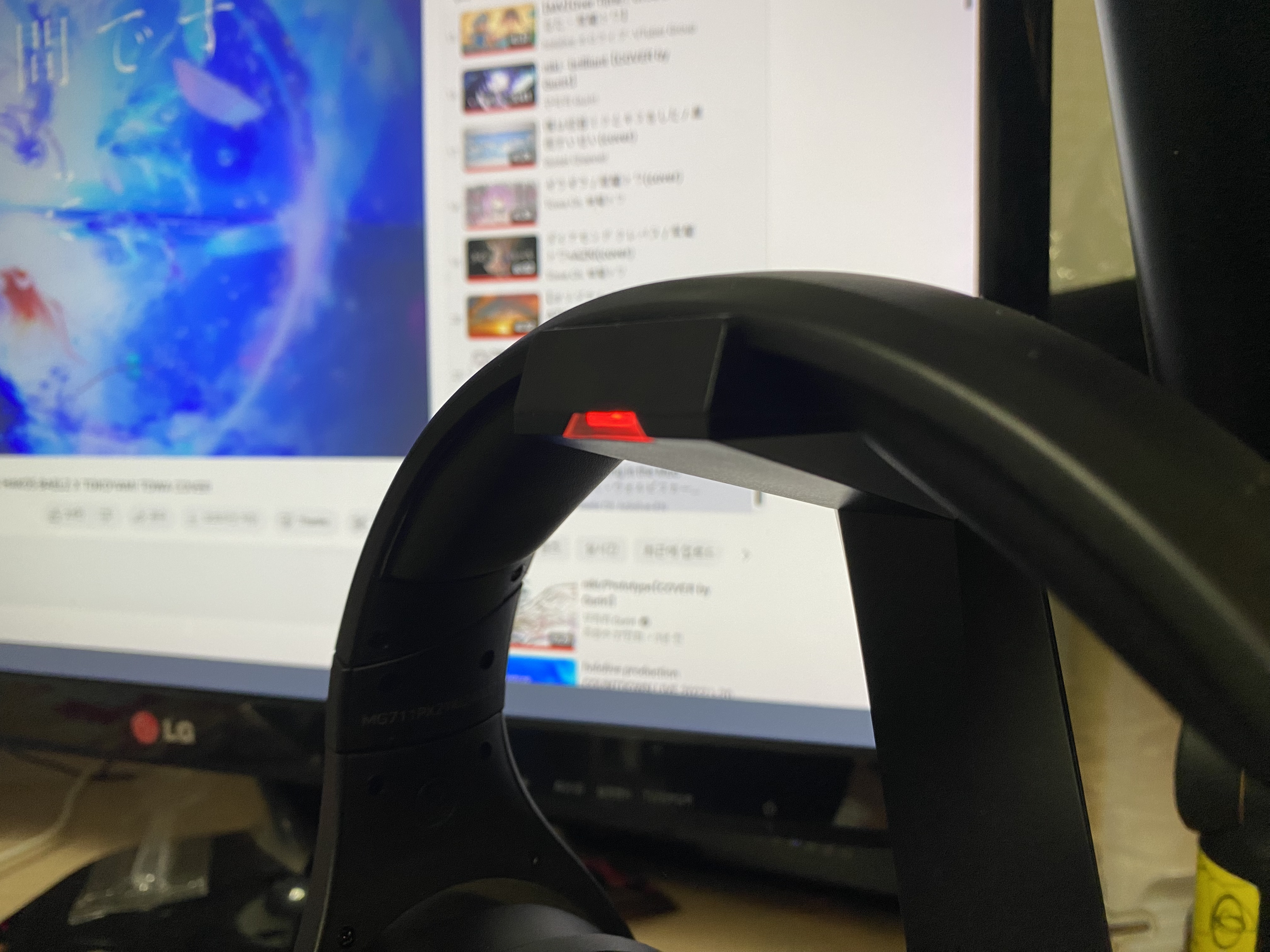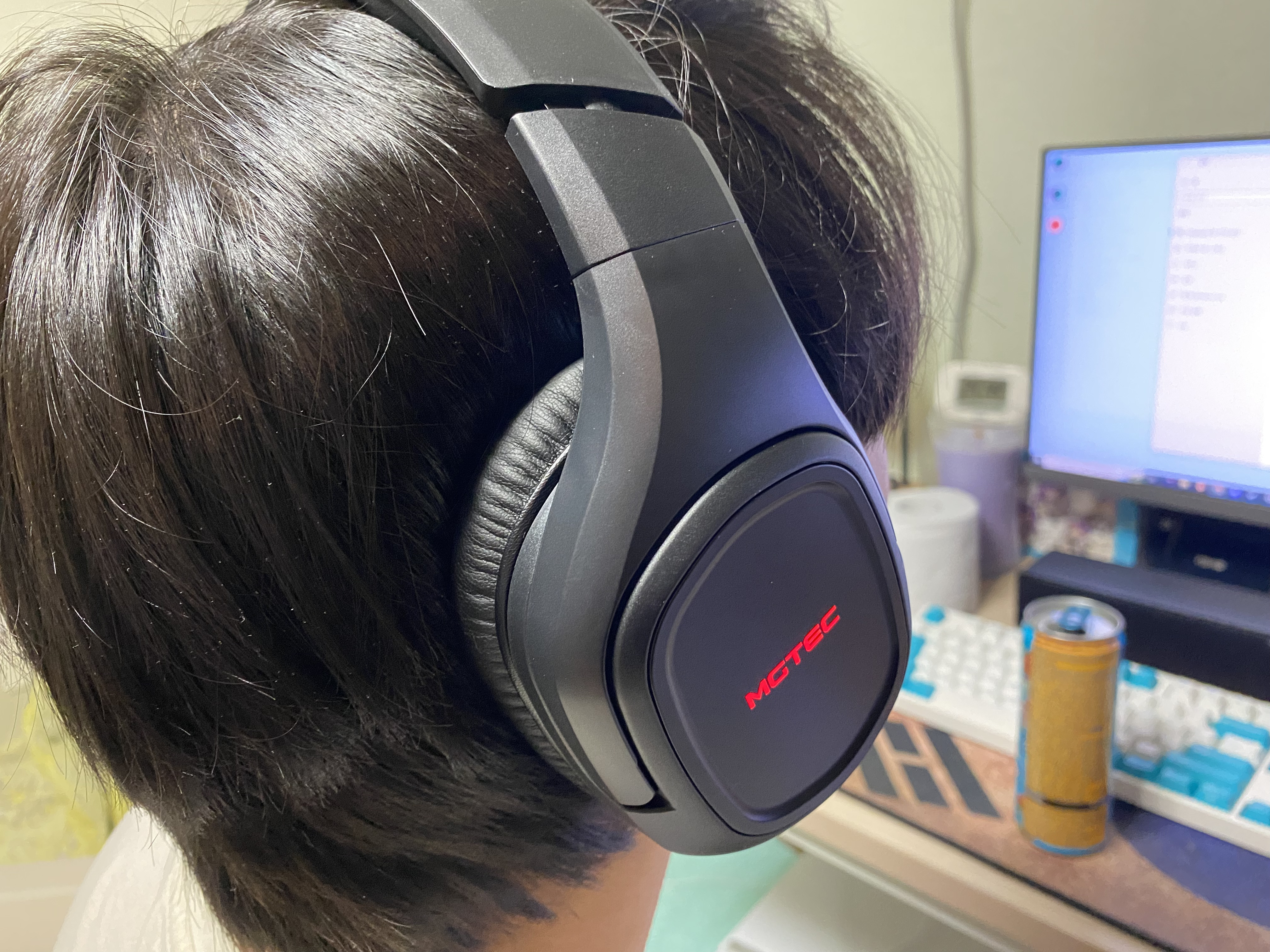 마지막으로 착용 모습이다. 귀를 전체적으로 잘 덮어주는 크기에 주변 소음 차폐가 아주 훌륭했고 귀도 매우 편안한 착용감을 주었다. 여기에 단아한 엠지텍 LED로고가 주는 감성이 그야말로 게이머의 감성을 한 껏 끌어올려주었다.