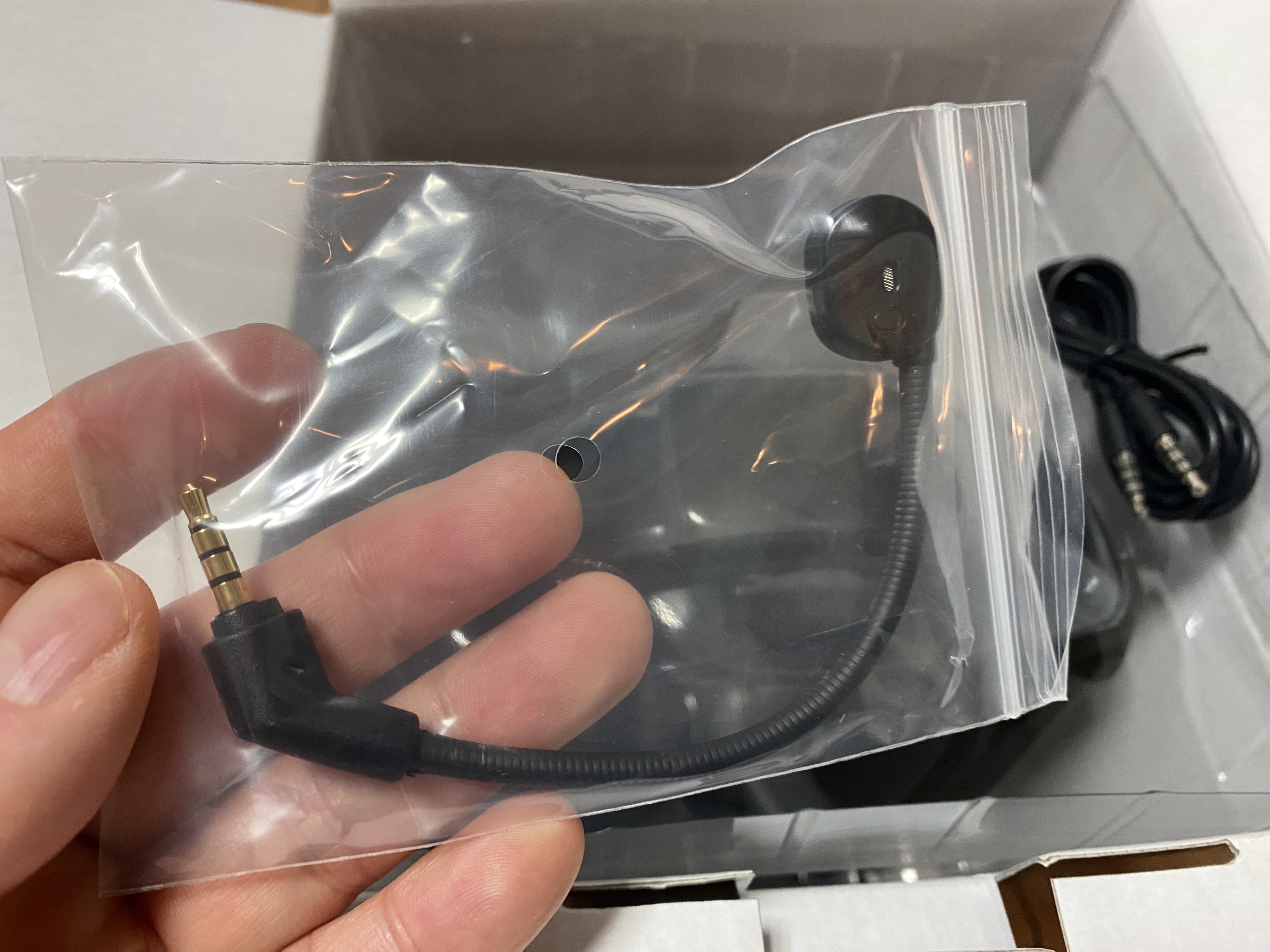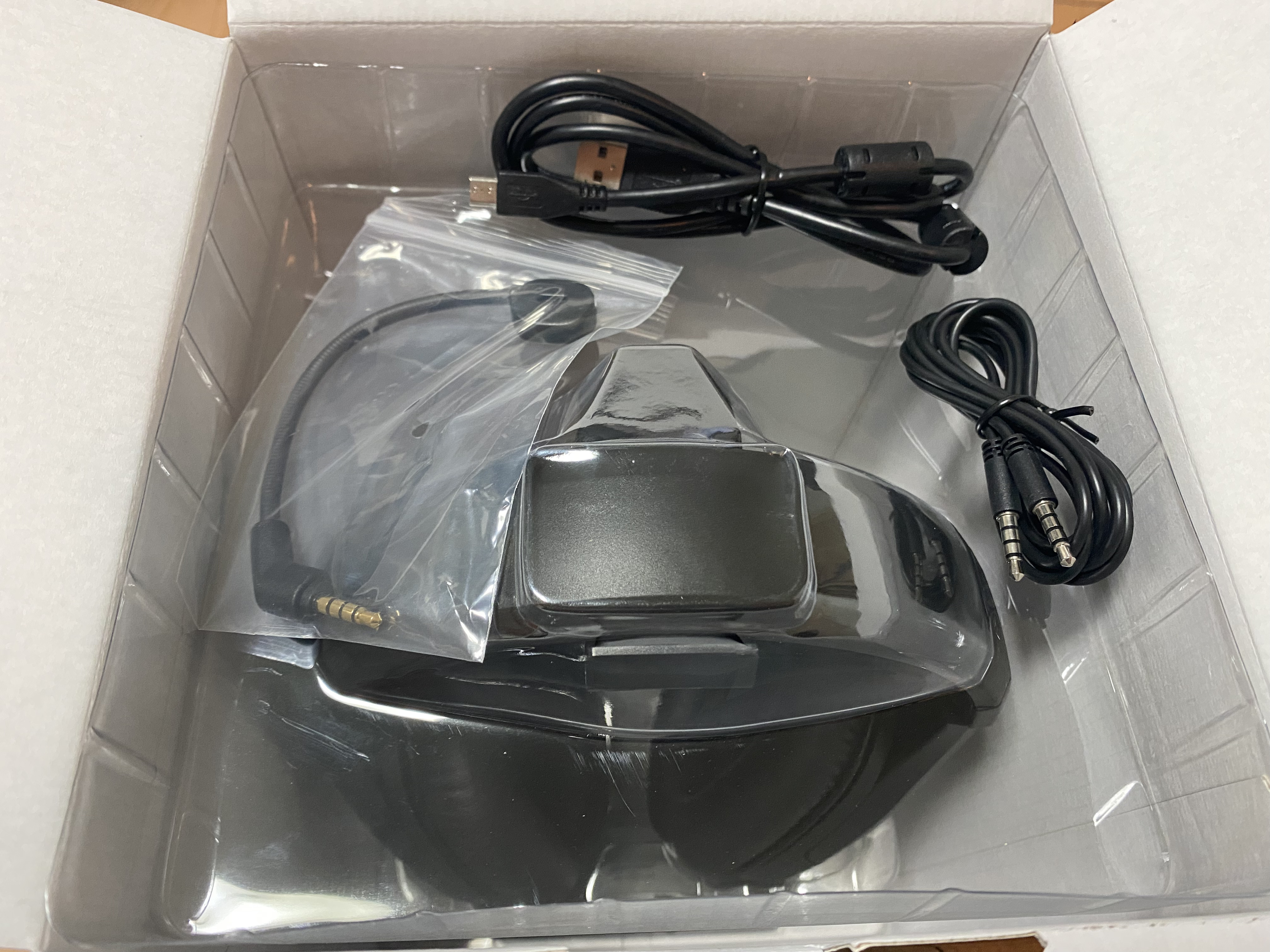 박스를 개봉하면 몇 가지 구성품을 확인할 수 있다. 설명서와 해드셋에 필요한 케이블이다.