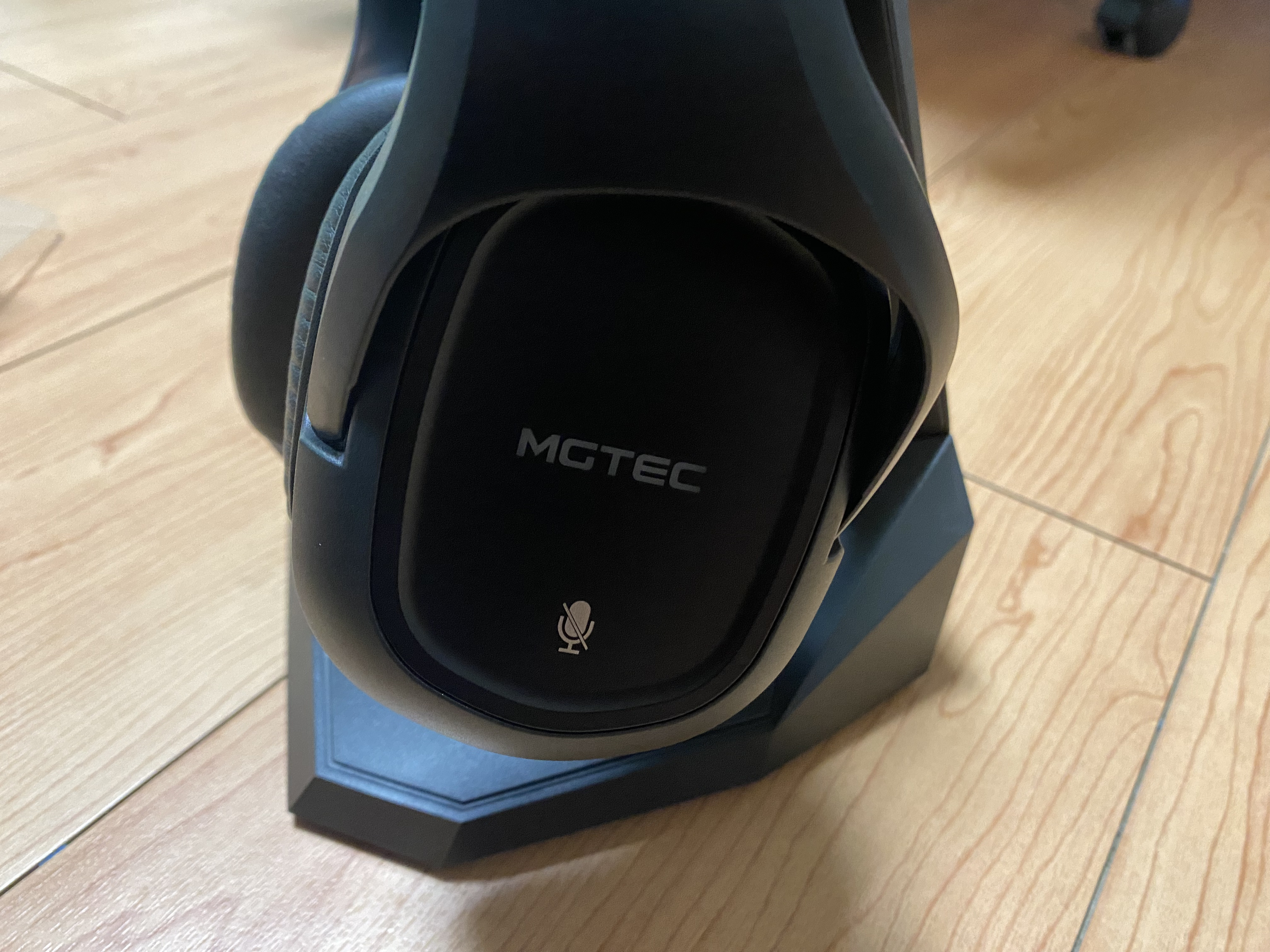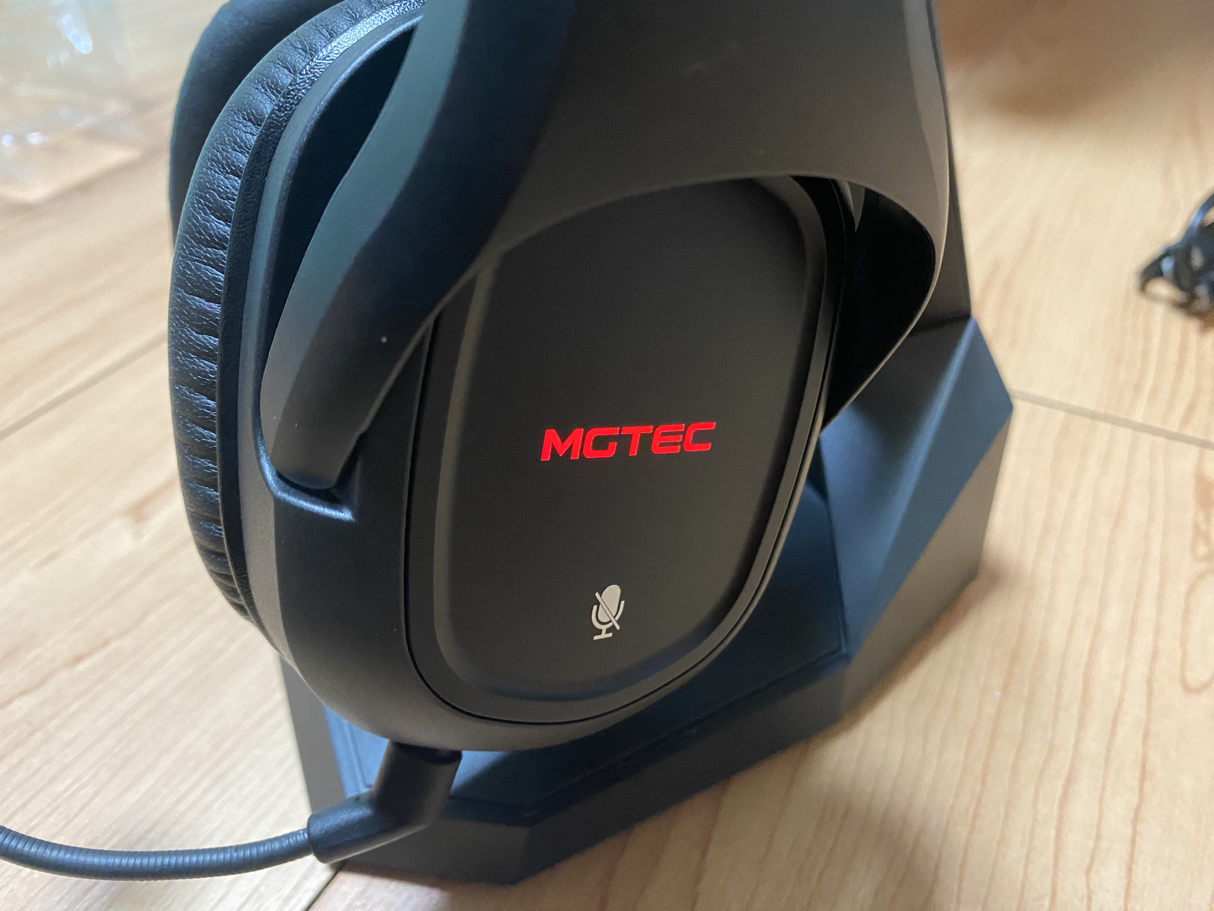 헤드셋 좌측에는 엠지텍 로고와 마이크 음소거 버튼이 탑재되어 있다. 음소거 버튼이 상당히 직관적으로 작동할 수 있도록 설계되어 있어 매우 만족스러웠다. 왼쪽에 배치한 이유도 FPS 게임을 할때 주로 오른손은 마우스를 사용하기에 키보드를 사용하는 것을 고려하여 왼쪽에 배치한 것 같다.