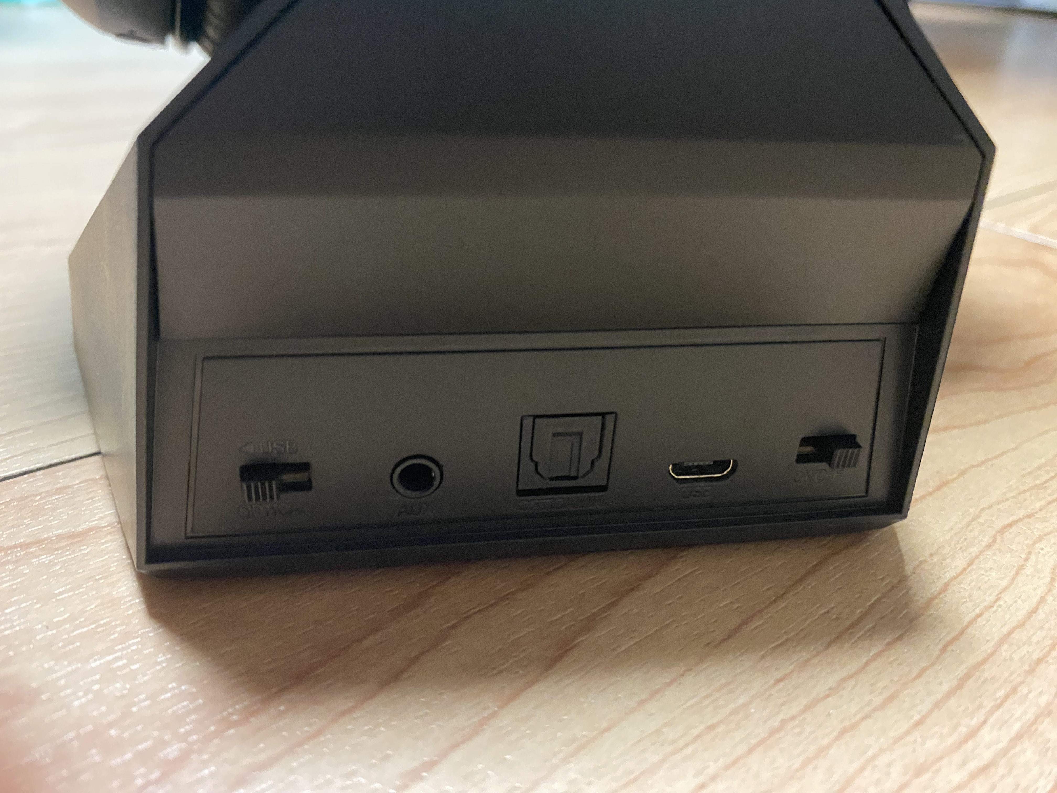 거치대는 하나의 오디오 인터페이스와 같은 역활을 한다. .기본적 USB로 PC와 연결하면 PC의 오디오 신호를 받아 무선으로 헤드셋으로 전송해주는 역활은 물론 광케이블 및 AUX 단자를 통해 입력 받은 오디오 신호 역시 헤드셋으로 전송할 수 있어 TV의 오디오신호를 광케이블로 연결하여 영화 감상 시 활용할 수도 있고 XBOX나 PS5의 오디오를 광케이블로 연결하여 헤드셋을 통해 게임을 즐길 수 있다는 장점이 있다.