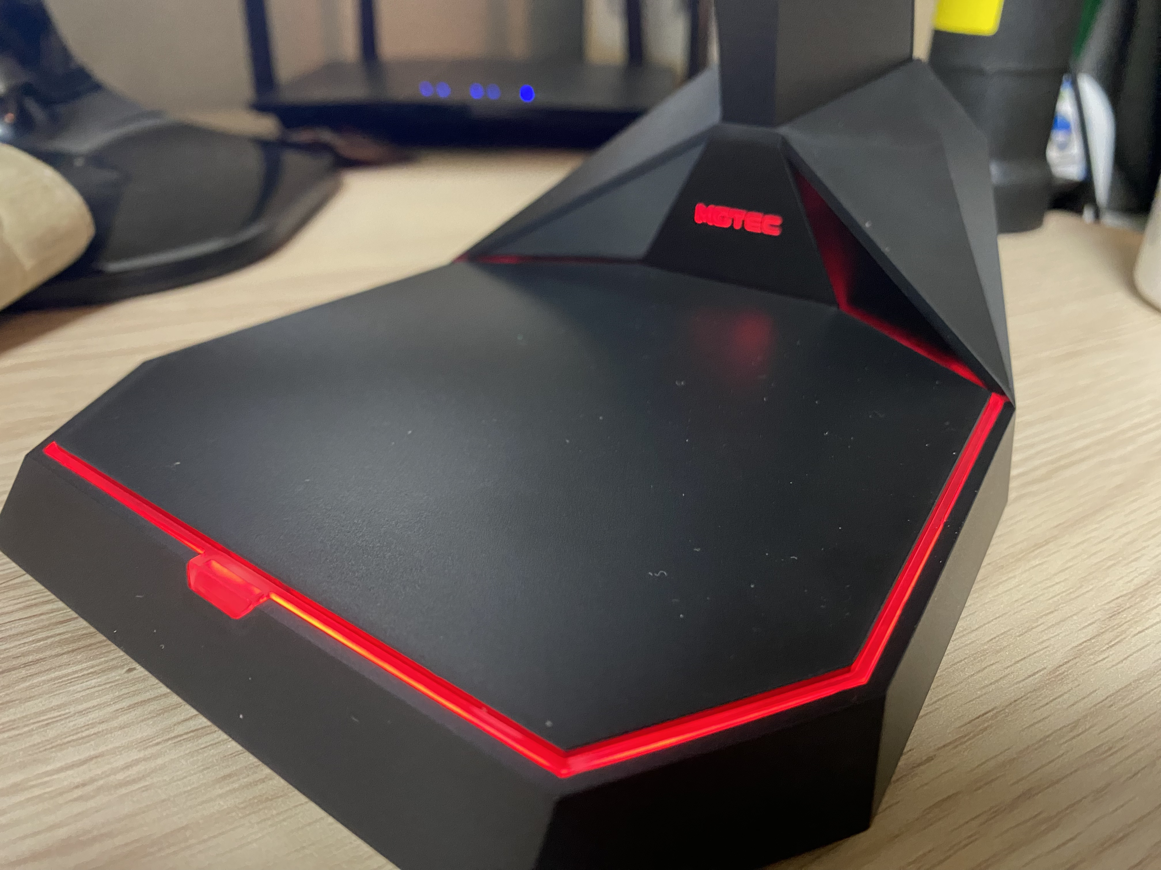 USB를 연결하면 거치대 하단에 멋진 LED를 볼 수 있다. 고급의 상징인 검정과 빨강의 조합이 은근한 부심을 불러 일으키는 제품이었다. 친구들이 보면 아마도 개간지라고 할 것 같아 구매 후 더 뿌듯했다.