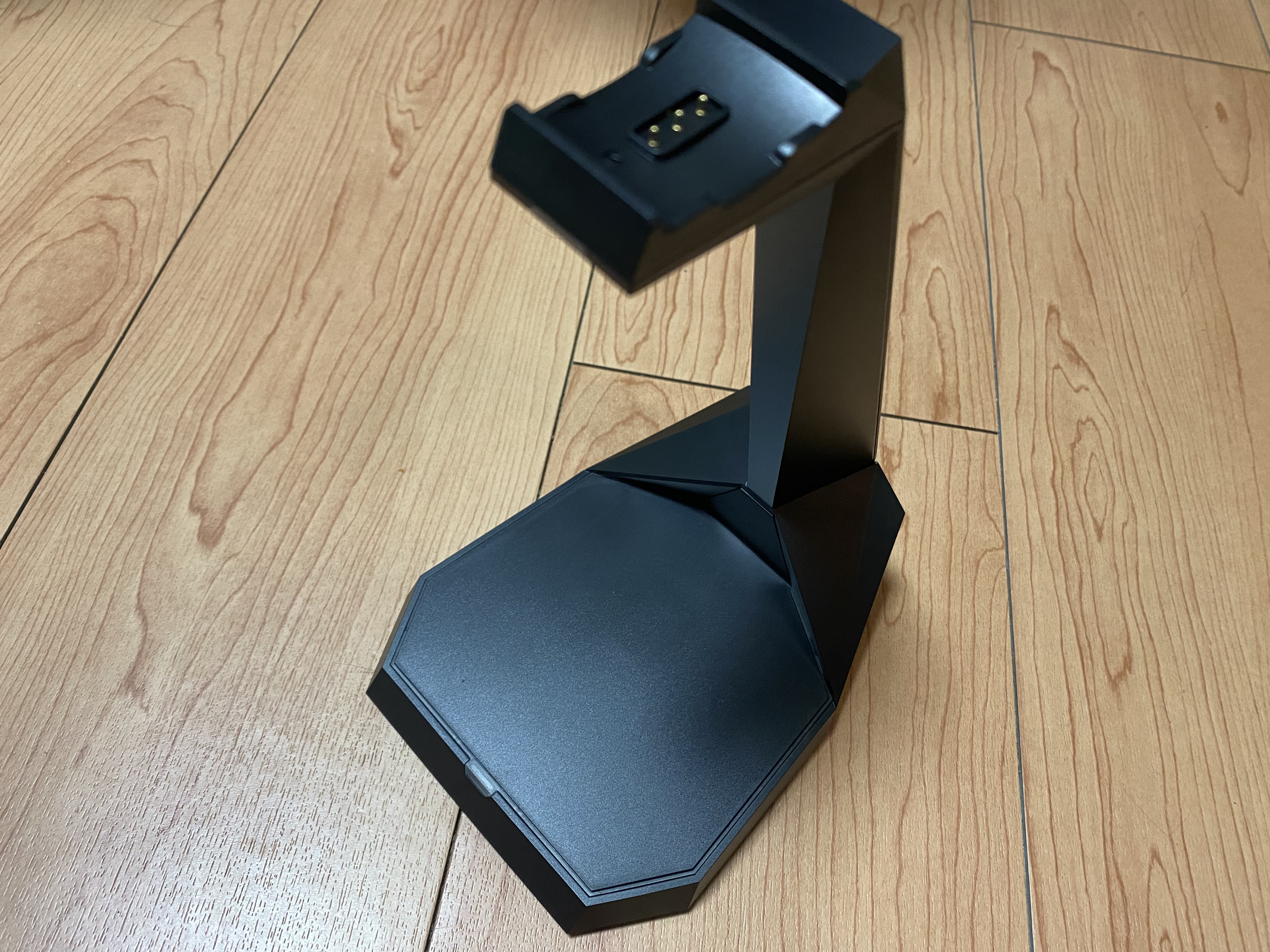 또한 이 거치대가 헤드셋과 통신을 통해 소리를 헤드셋에 전송하거나 마이크 음성을 PC에 전송하는 송수신기 역활까지 겸하고 있다. (송수신 방식이 FM방식인지 블루투스 방식인지 명확한 안내가 없어 궁금했다.)